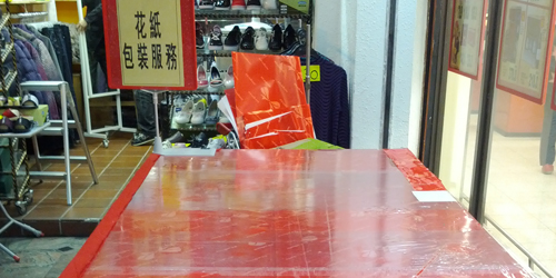從前這張紅枱是非常重要,因為家家戶戶都必須要在這張紅枱收爐前,買好新年要送出去的賀年禮物品。但自從新年的街頭不再水靜鵝飛,年初一購物變得無難度後,已經沒有預先入貨的需要,紅枱的價值已經不再。拜年前才到親友家附近購買賀禮,看來更方便就手!